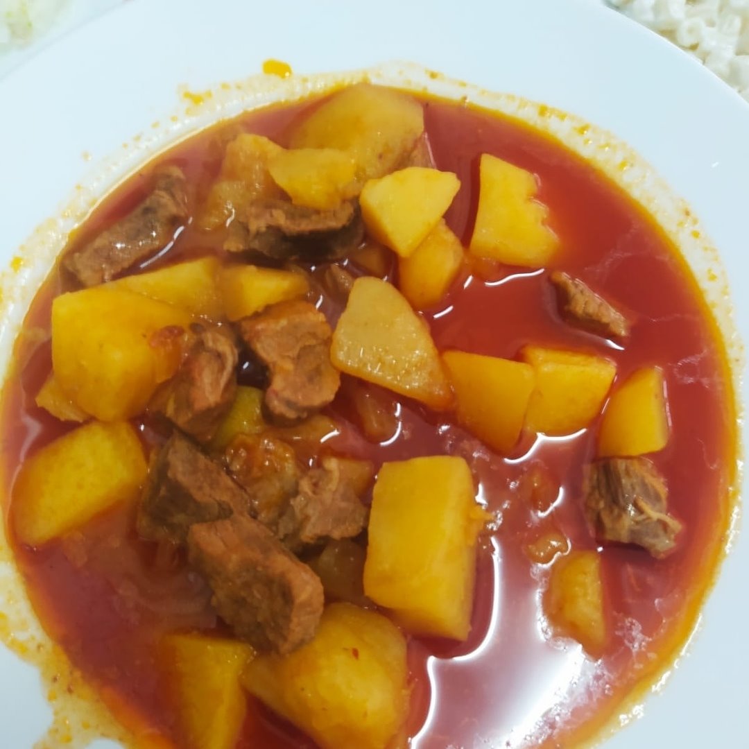 Bugünkü menümüz süzme mercimek çorba, etli patates, nohutlu pilav, amerikan salata, güllaç ve hamidiye suyu.